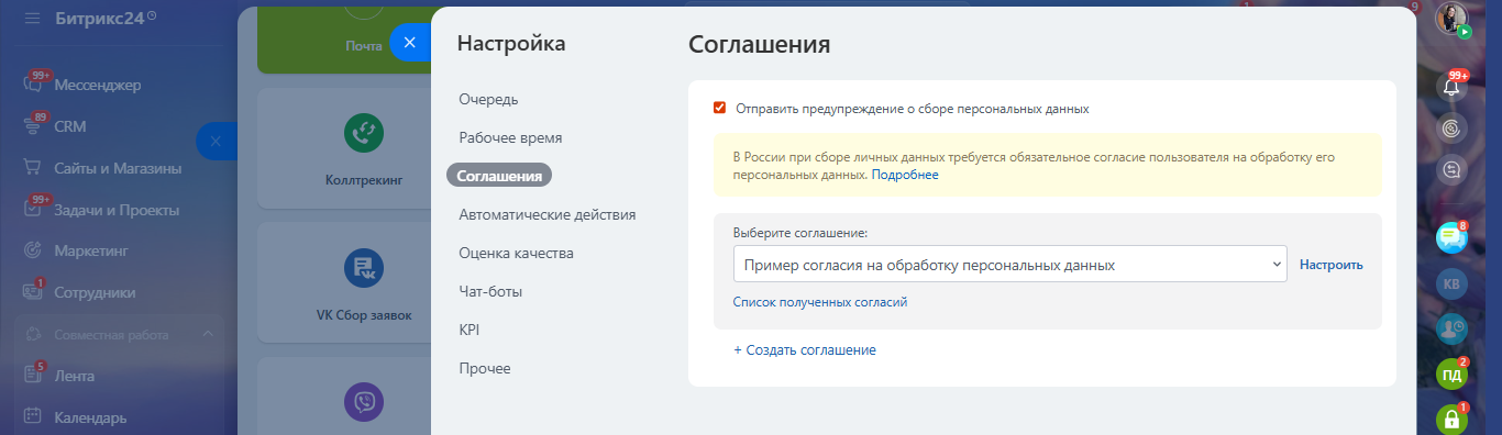 В России при сборе личных данных требуется обязательное согласие пользователя на обработку его персональных данных. Вы можете выбрать шаблон по умолчанию, или создать свой собственный.