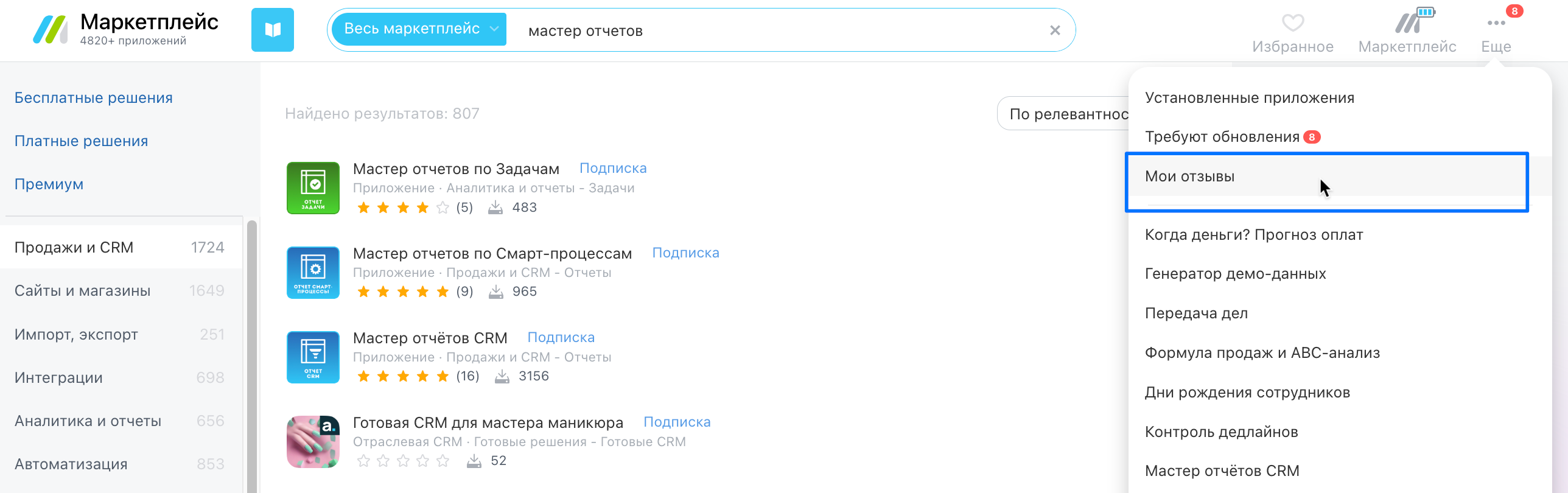 А если вы захотите изменить отзыв — тогда нужно найти пункт «Еще» в Маркетплейсе, и внутри него — «Мои отзывы».